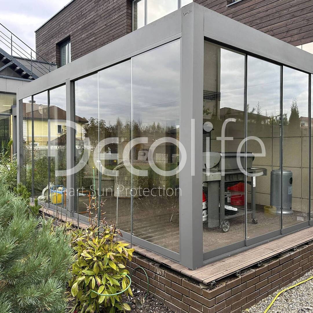 Пергола Decolife В500 и раздвижное остекление S150 купить для террасы, дачи, пристроенная к дому | Казань | 645