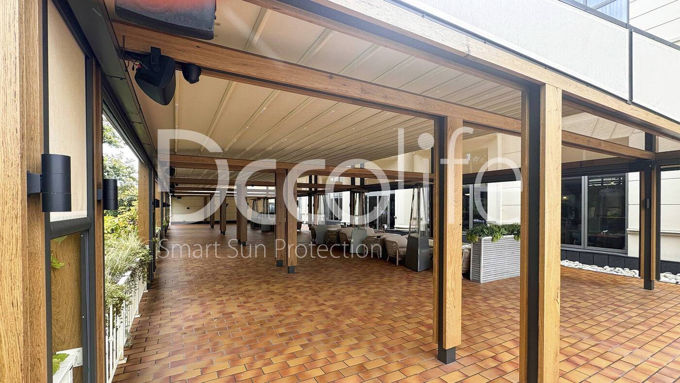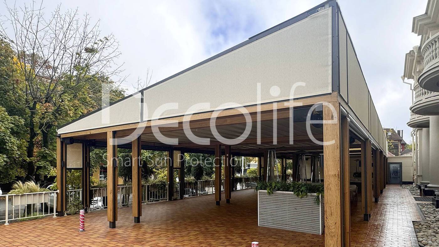 Тентовая пергола Decolife Solo Basic обшитая деревом + Zip 100 купить для кафе и ресторана