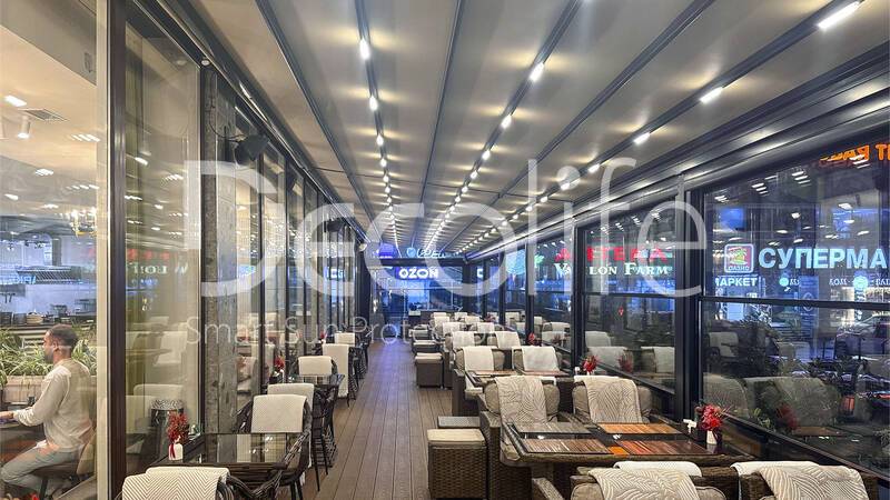 Пергола Decolife Solo Basic + гильотинное остекление W500 купить для кафе и ресторана | Казань | 652