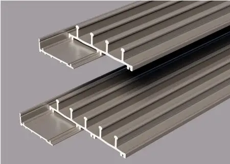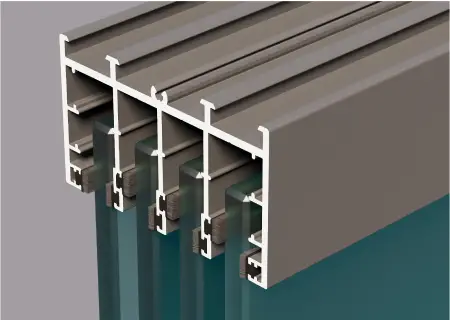 Представлен в двух вариантах сдвижных дорожек на 4 и 6 стекол и соответственно 4/8 и 6/12 раздвижных панелей. Дорожки опираются на нижний несущий рельс с помощью специального алюминиевого профиля, движение осуществляется с помощью антифрикционных роликов. Совместима со всей линейкой пергол Decolife.